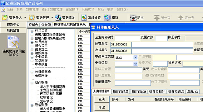 | 上海电子口岸特殊监管区域信息化管理系统--部分界面截图 |